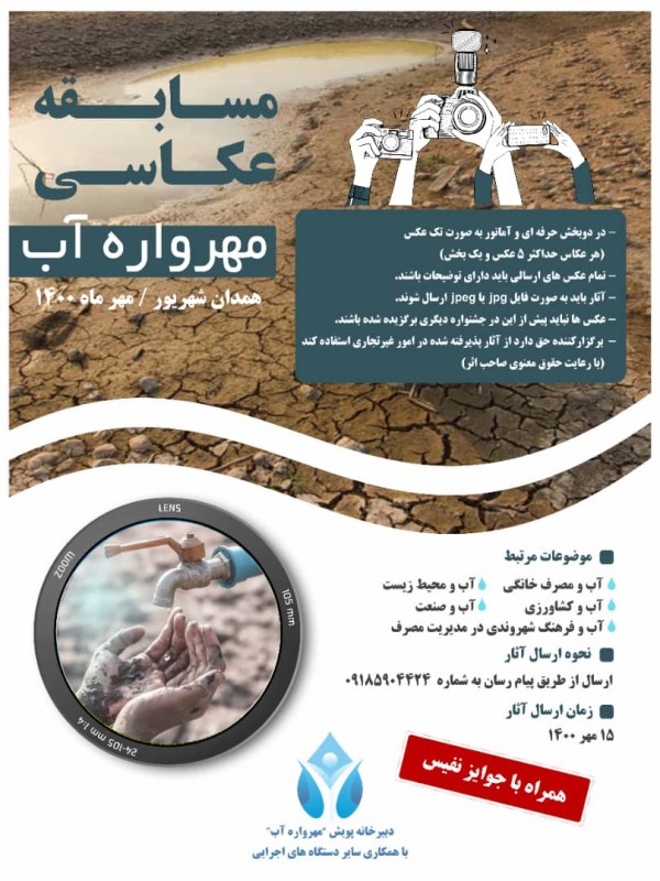 به گزارش روابط عمومی شرکت آب منطقه ای همدان، این پویش در ۶ بخش عکس، فیلم ۱۰۰ ثانیهای، نقاشی، مقاله و پژوهش، داستان کوتاه و کلیپهای کوتاه آموزشی در حال برگزاری است.